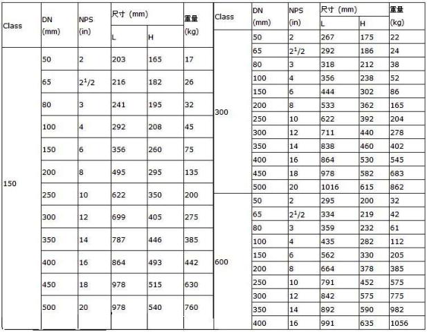 結(jié)構(gòu)長(zhǎng)度:API 6D ,ASME B16.10